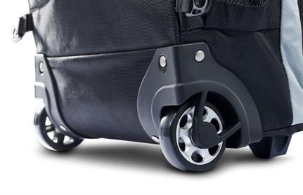 wide wheels making this bag more durable and creating the ultimate smooth