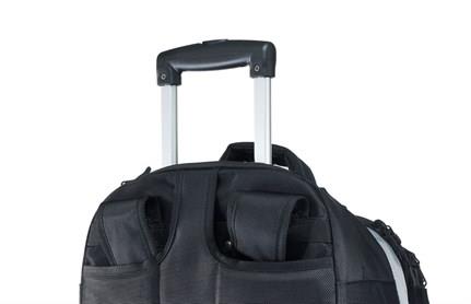 backpack and trolley bag and features a "wide wheel base" system with