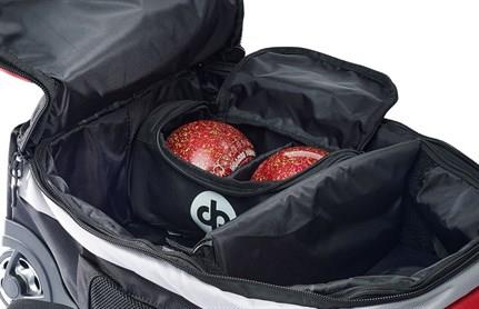 gliding effect. Bowls are stored over the wheels or close to your back with a