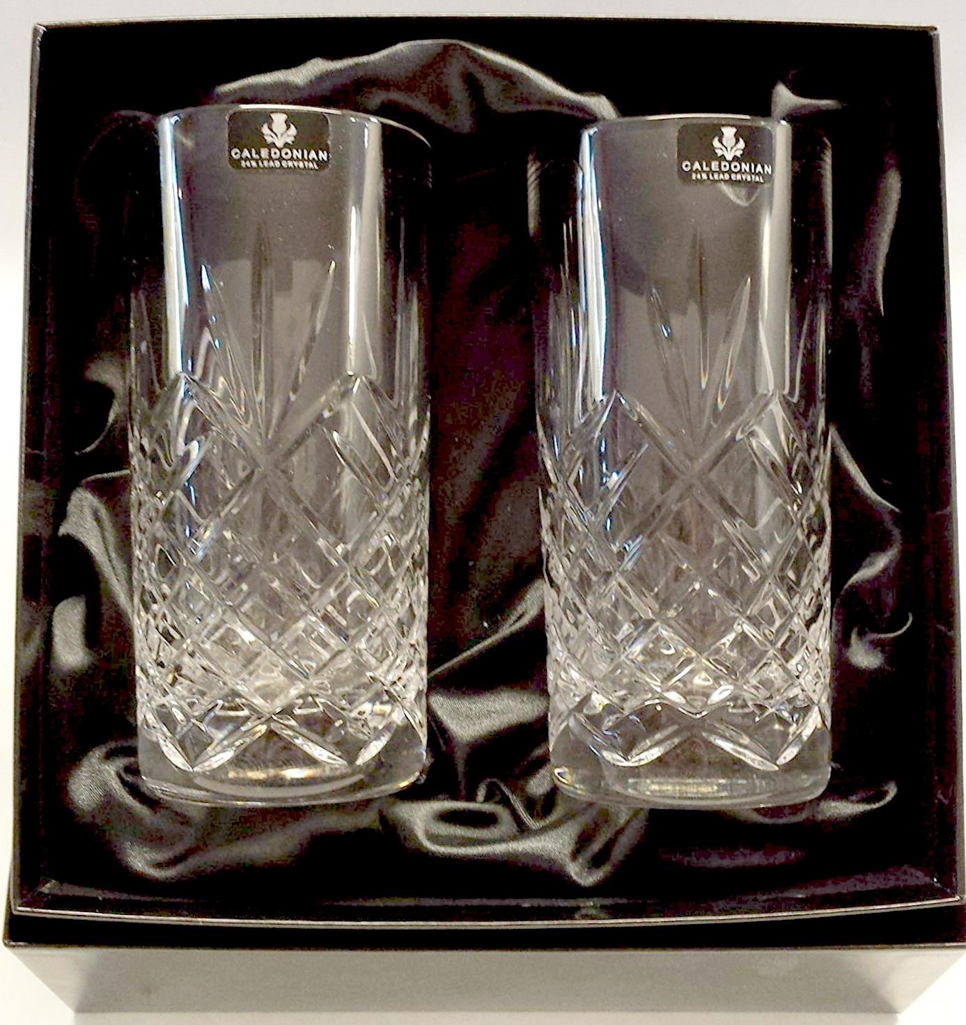 Caledonian Fully Cut 24% Lead Hi-Ball Glasses Set of 2 in Presentation Box