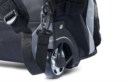 backpack and trolley bag and features a "wide wheel base" system with