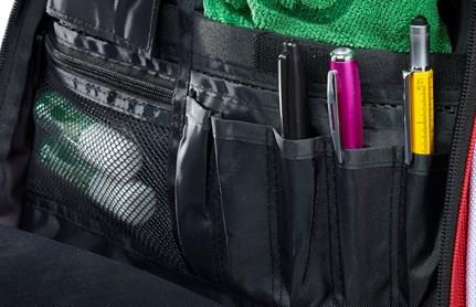 clothing with an organiser and key clip.